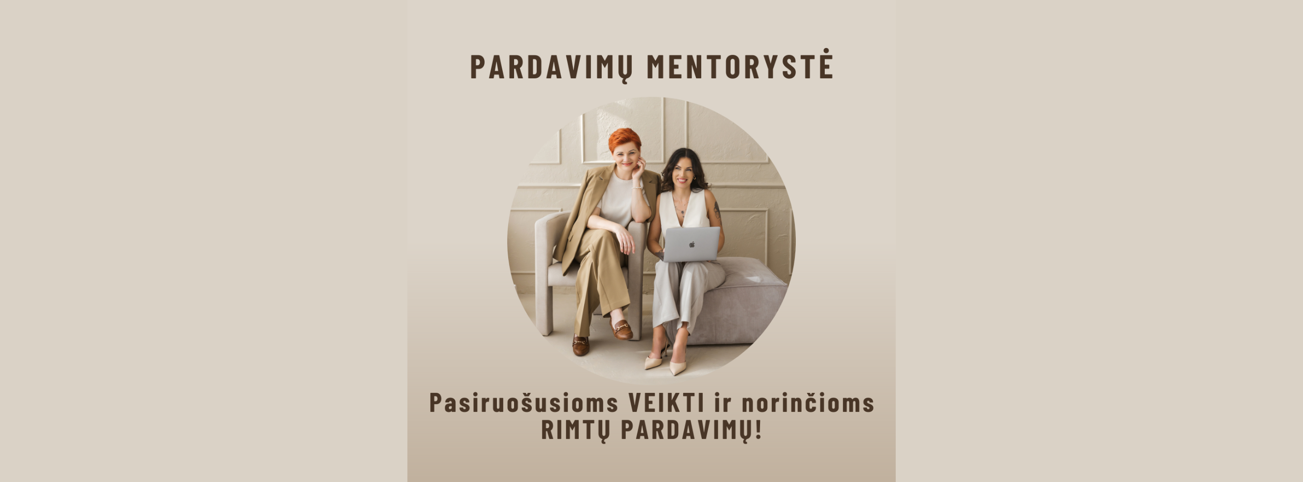 Susitikimai vyks su mumis, mentorėmis Inga ir Indre, kurios turi po 20 metų sėkmingų pardavimų patirties ir pačios savo versluose yra ne kartą padvigubinusios ir patrigubinusios apyvartas.